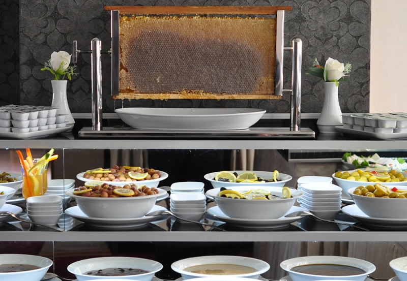 Süregelen geleneksel mutfak mükemmelliğini zirveye taşımak azmiyle, deneyimli şeflerimizin en taze ve en kaliteli malzemeleri kullanarak hazırladığı açık büfe kahvaltısı, Türk ve Dünya mutfağının seçkin örnekleri ve bar hizmetiyle gün boyu konuklarını ağırlayan hafif bir tabak atıştırmalıktan, leziz bir öğüne, tüm damak zevklerini beğeninize sunuyor.